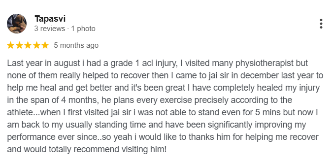 October 22, 2025I suffered a serious ACL tear, medial meniscus and RAMP injury while playing football an injury that left me unsure if I would ever get back to my previous fitness level. Thankfully, I found... read more this exceptional physiotherapy centre, and my entire recovery journey has been nothing short of inspiring. From the very first session, the dedication, professionalism, and positivity of the entire team stood out. Jay Sir, Mehar Ma’am, and Tejashvi Ma’am have been more than just physiotherapists they have been mentors, motivators, and friends throughout my recovery process. They treated me not as a patient, but as a friend and younger brother who needed support, guidance, and encouragement at every step. Their approach combines expert medical knowledge, personalized therapy plans, and genuine care, which makes the rehabilitation process both effective and enjoyable. Each session was structured, challenging, and motivating they constantly pushed me to go beyond my limits while ensuring that I recovered safely and sustainably. What I truly admire is the positive environment they’ve created at the centre. It’s a place filled with energy, motivation, and teamwork. Whether you’re recovering from a sports injury, surgery, or chronic pain, you’ll find a supportive space where everyone is focused on helping you heal both physically and mentally. I can confidently say that this physiotherapy centre has played a huge role in helping me rebuild not only my body but also my mindset. Today, I feel stronger, more confident, and ready to get back to the game I love, I really thank to them for there guidance ,commitment and support. If you’re looking for a professional, result-driven, and motivating physiotherapy centre, I wholeheartedly recommend this team. Their expertise, compassion, and energy truly set them apart.